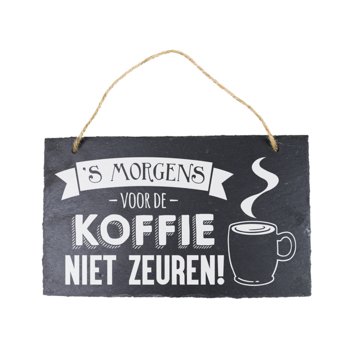 Leisteen bordje `voor de koffie...`