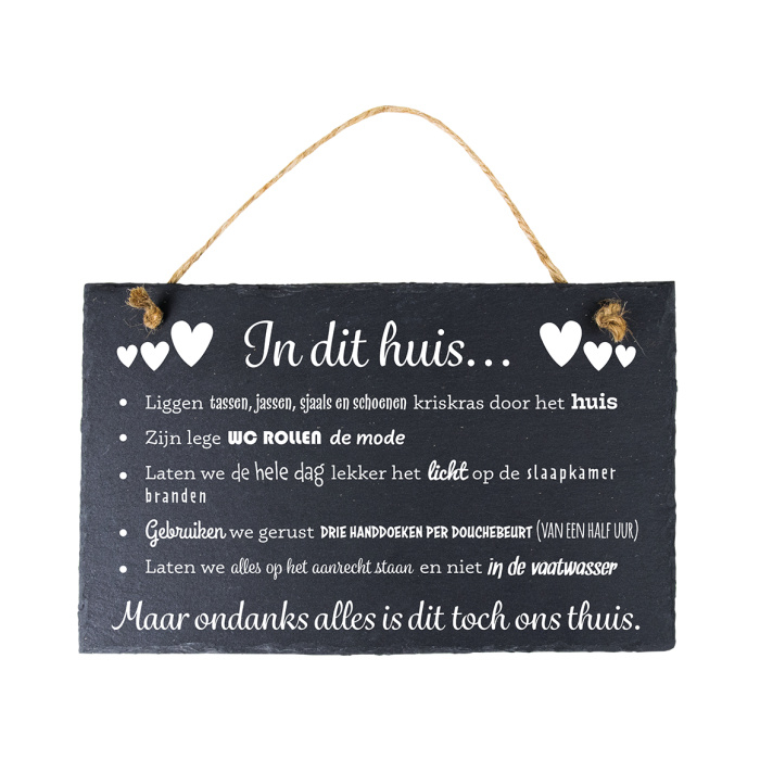 Leisteen bordje `in dit huis...`