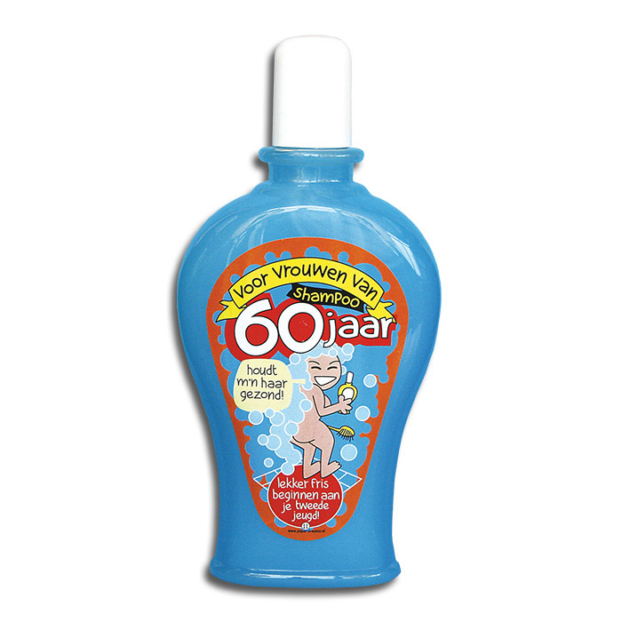 Fun shampoo 60 jaar! Deze fun shampoo is voorzien van vrolijke kleuren, grappige afbeeldingen en leuke teksten. Leuk om te krijgen, leuk om te geven.